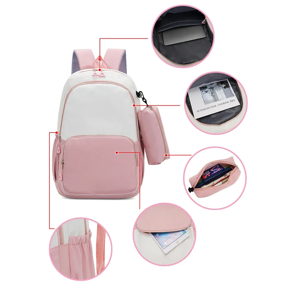 Produzido em nylon resistente com forro em poliéster, garante longa vida útil e segurança para os pertences. A mochila possui design espaçoso (30 × 44 × 19 cm), oferecendo amplo compartimento principal e bolsos adicionais para organizar livros, cadernos, materiais escolares ou itens pessoais. O estojo (19 × 5 × 7 cm) é prático e cabe perfeitamente dentro da mochila, mantendo lápis, canetas e acessórios sempre à mão.