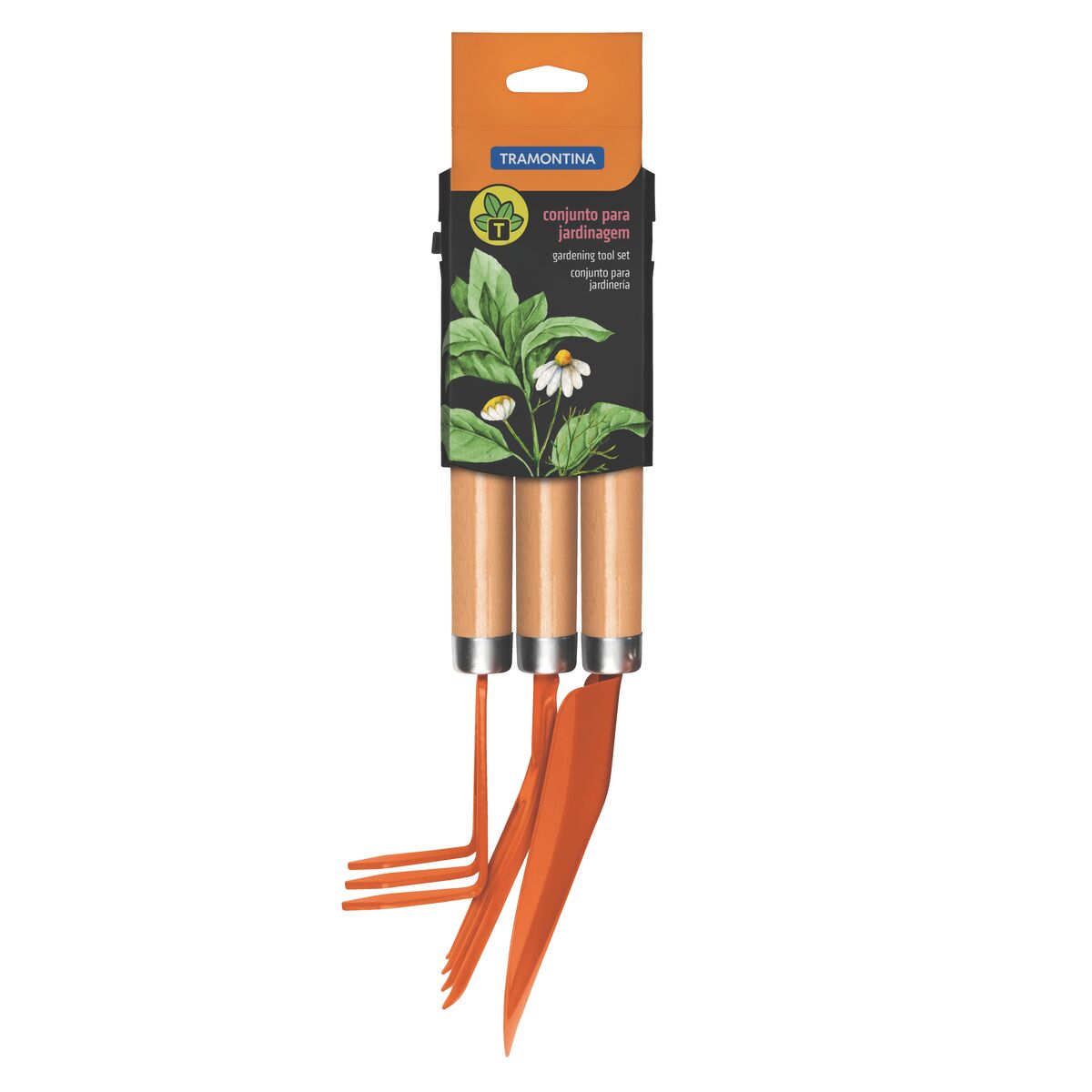 Jogo para Jardinagem Tramontina 3 Peças – Ferramentas Metálicas com Cabo de Madeira