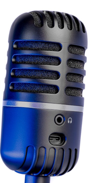 Compatível com diversos sistemas (Windows 7 ou superior, OSX 10.9 ou superior), o microfone possui conexão rápida via USB-C. Também conta com entrada P2 (3,5 mm) para fone de ouvido, permitindo monitoramento direto do áudio em tempo real.
