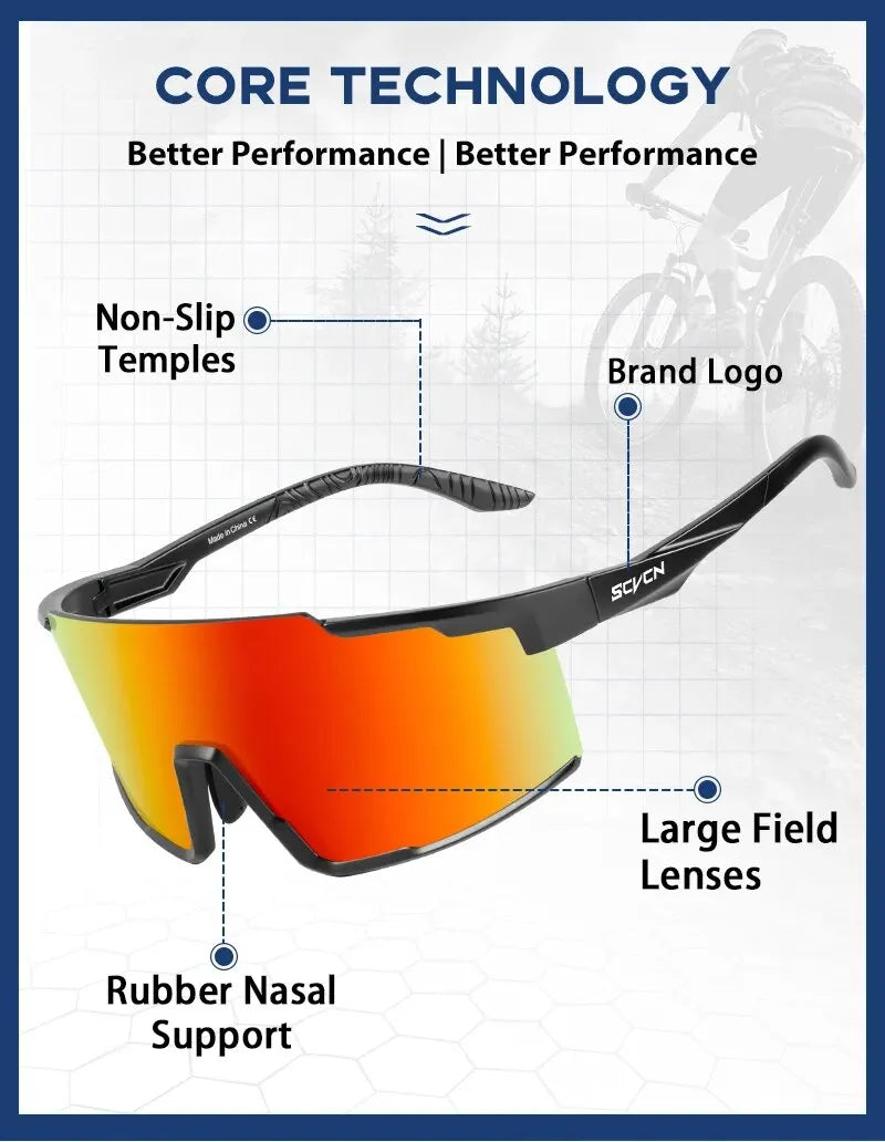 Óculos de Ciclismo SCVCN UV400 – Esportivos, Polarizados e Resistentes, Ideais para Mountain Bike, Estrada e Atividades ao Ar Livre