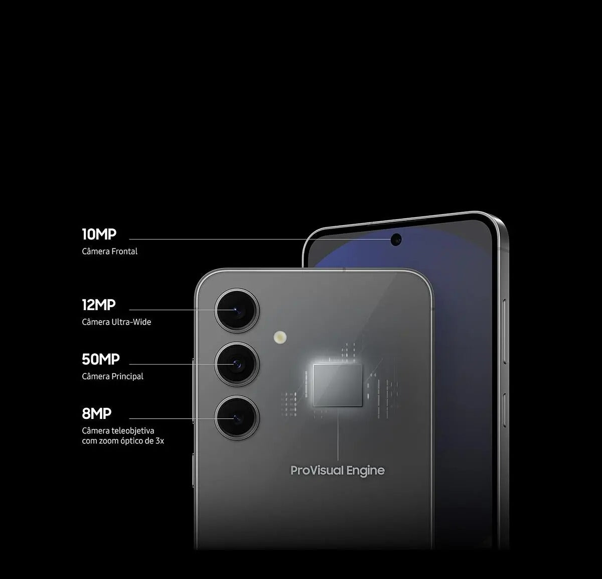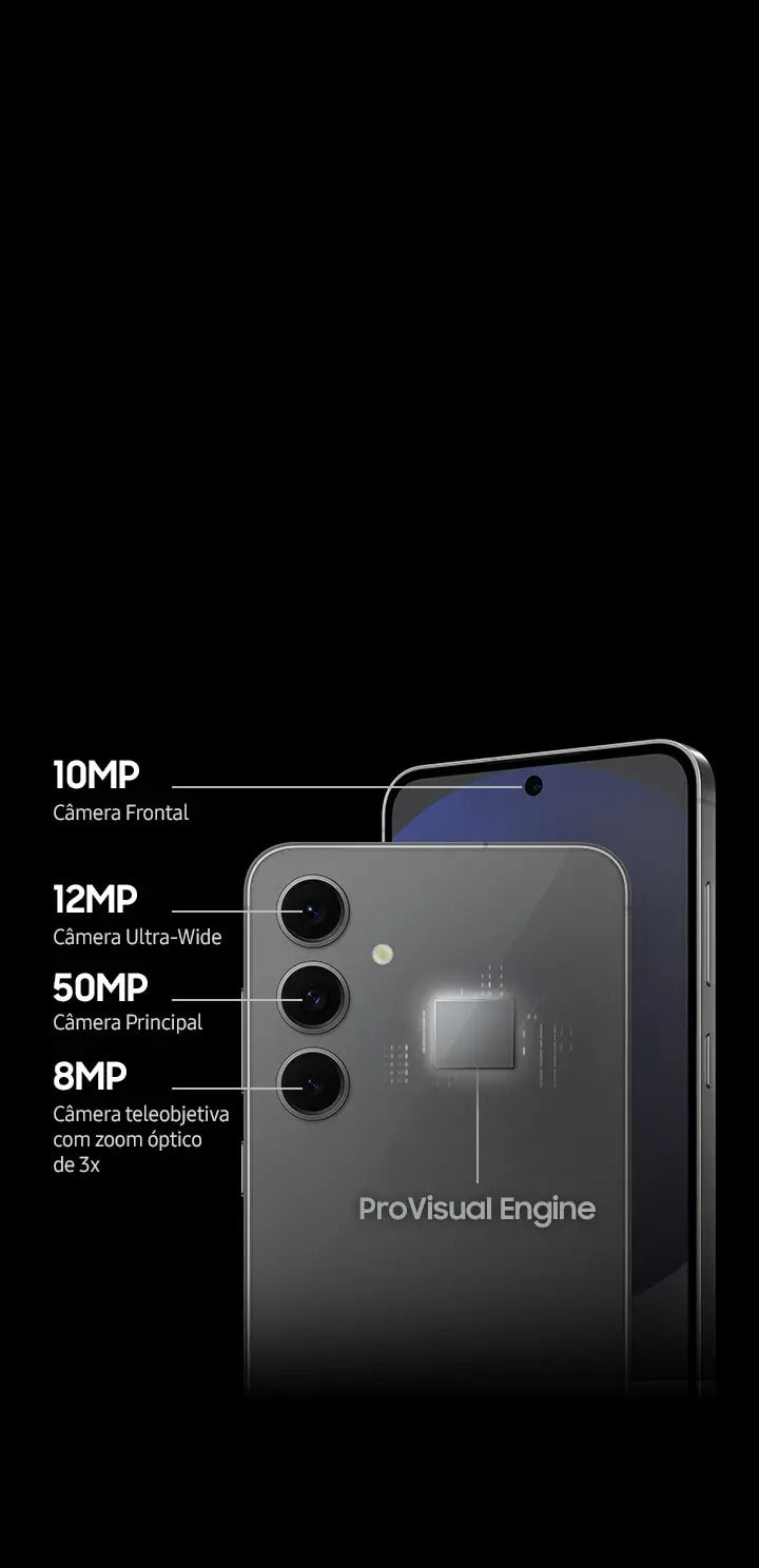 Além disso, o Galaxy S24 FE conta com o ProVisual Engine, garantindo desempenho de imagem otimizado em diferentes cenários de luz.